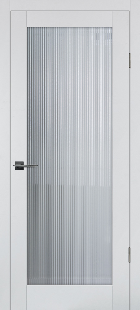 Полотно комплектуется объемной филенкой с фрезерованным рисунком "под рейку". В остекленных полотнах используется рифленное стекло с красивым прокатным узором в виде полос. Отлично смотрится в неоклассических и лофтовых интерьерах.
